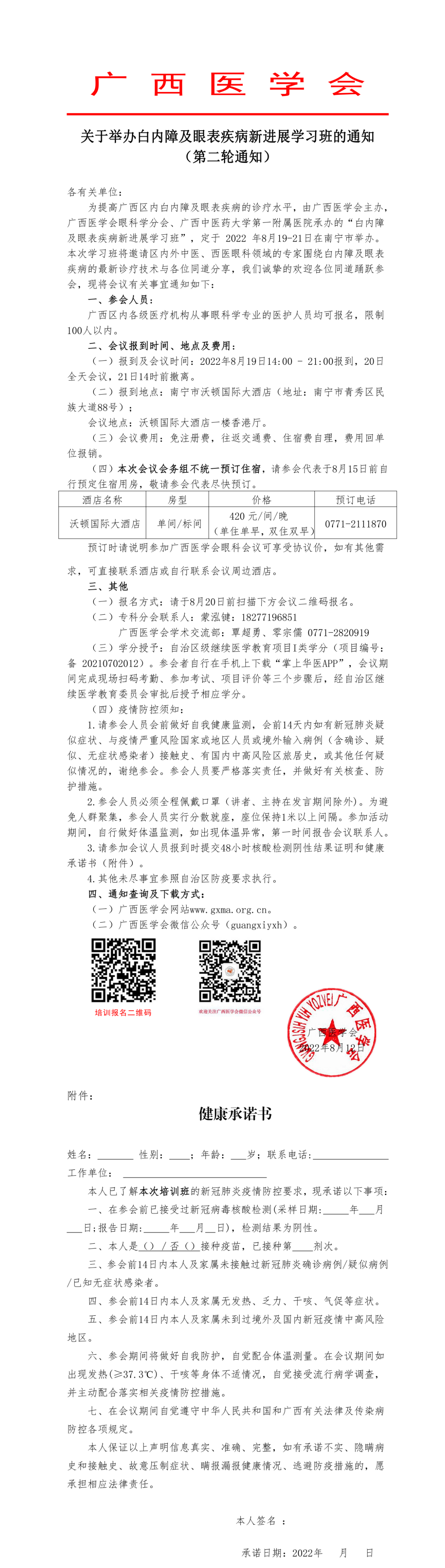 关于举办白内障及眼表疾病新进展学习班的通知 (第二轮通知)