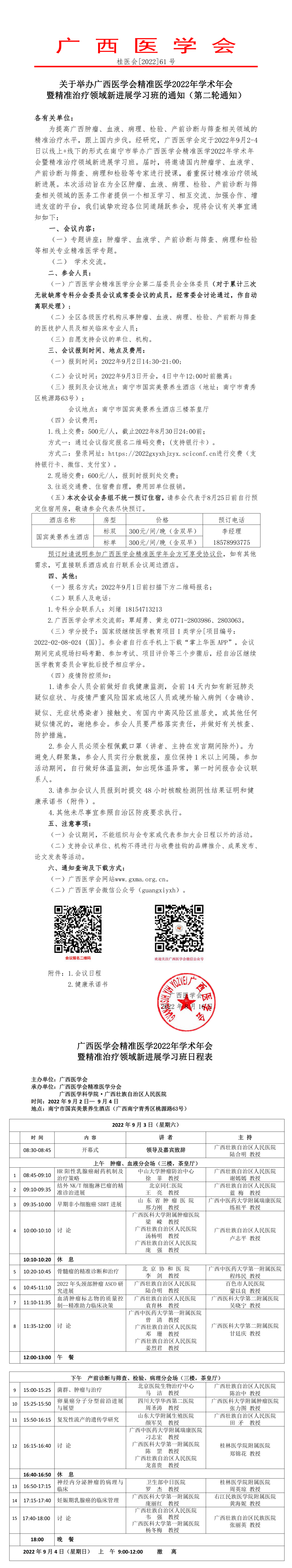 关于举办广西医学会精准医学2022年学术年会 暨精准治疗领域新进展学习班的通知(第二轮通知)