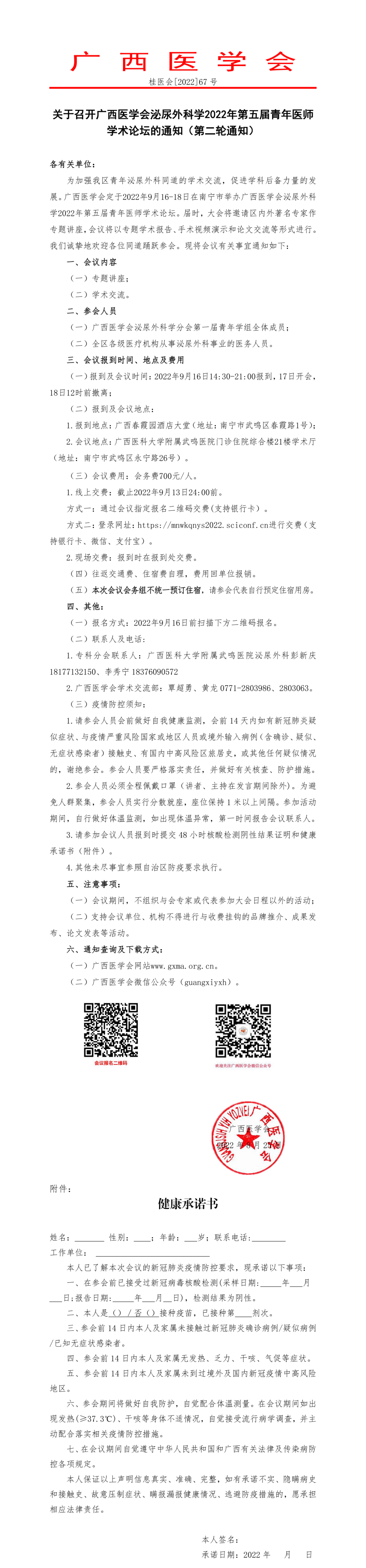 关于召开广西医学会泌尿外科学2022年第五届青年医师 学术论坛的通知(第二轮通知)