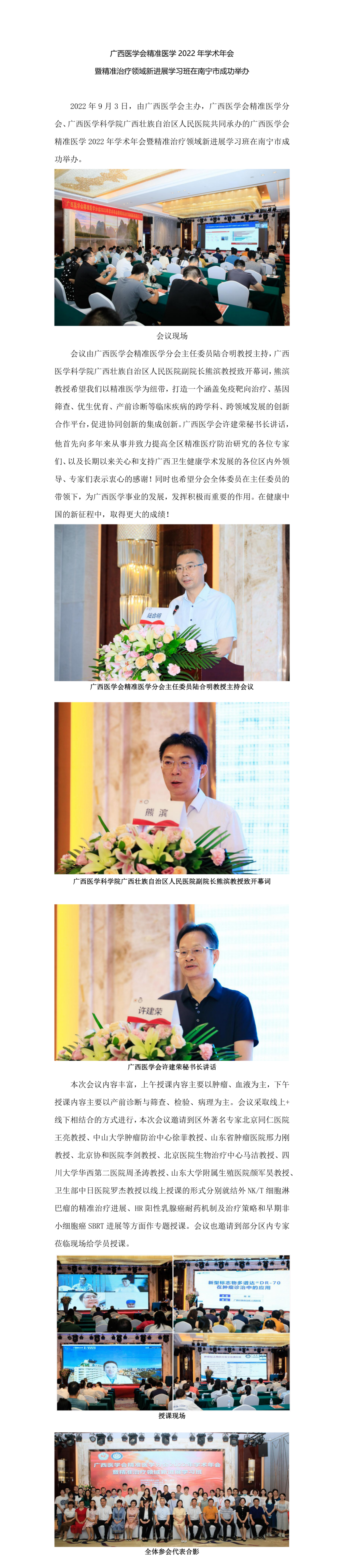 广西医学会精准医学2022年学术年会暨精准治疗领域新进展学习班在南宁市成功举办