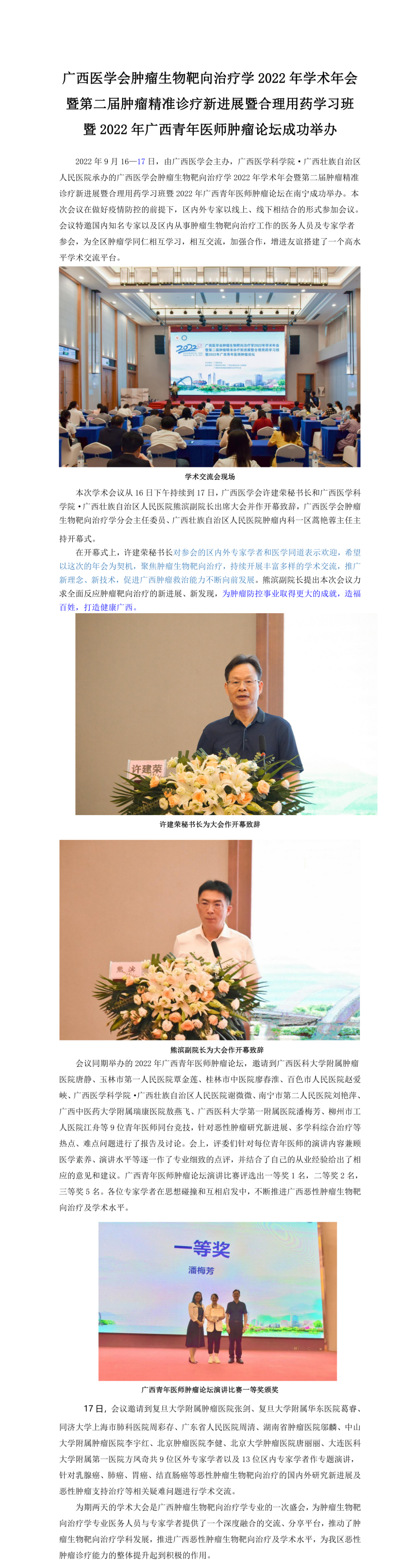 广西医学会肿瘤生物靶向治疗学2022年学术年会暨第二届肿瘤精准诊疗新进展暨合理用药学习班暨2022年广西青年医师肿瘤论坛成功举办
