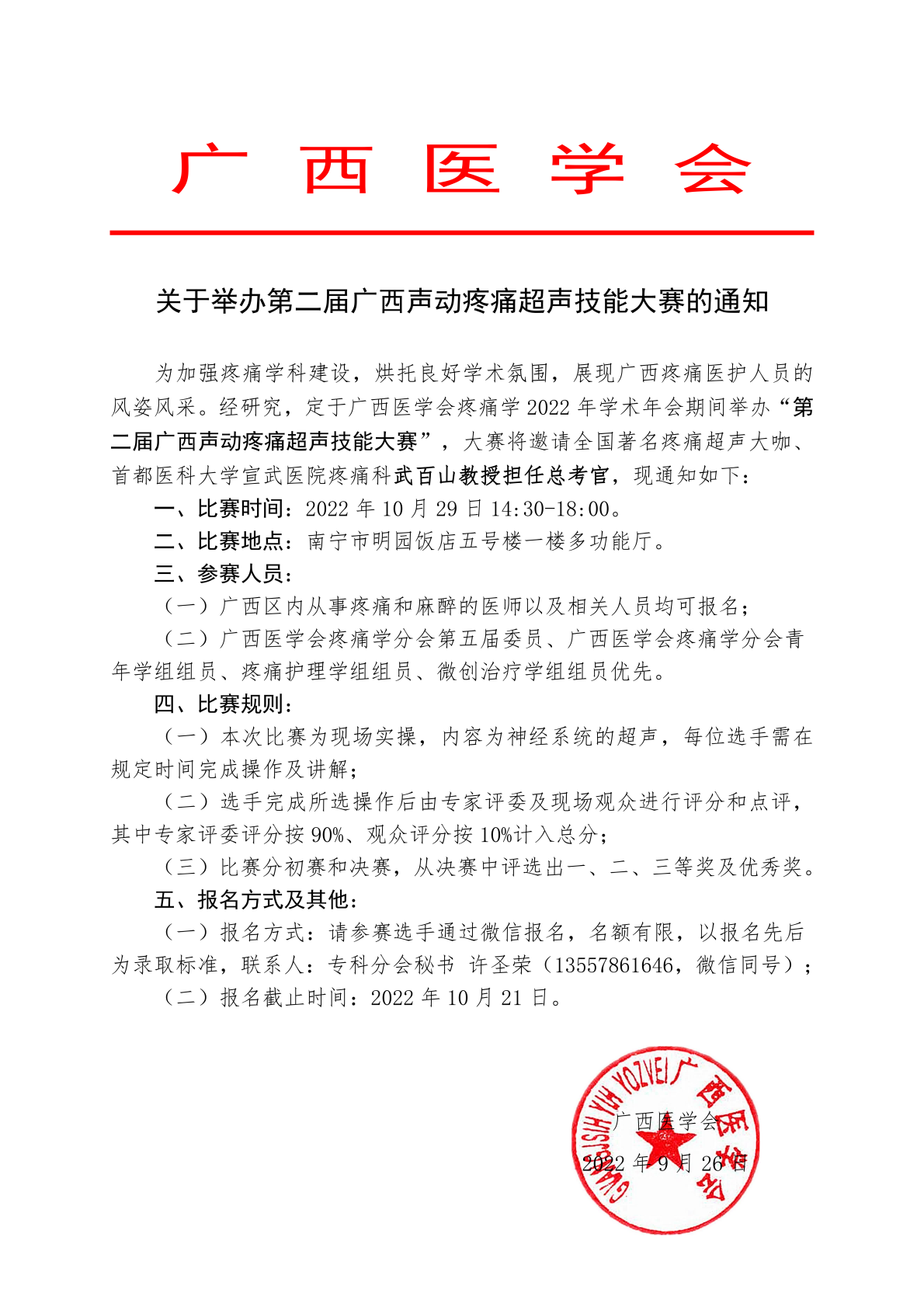 关于举办第二届广西声动疼痛超声技能大赛的通知