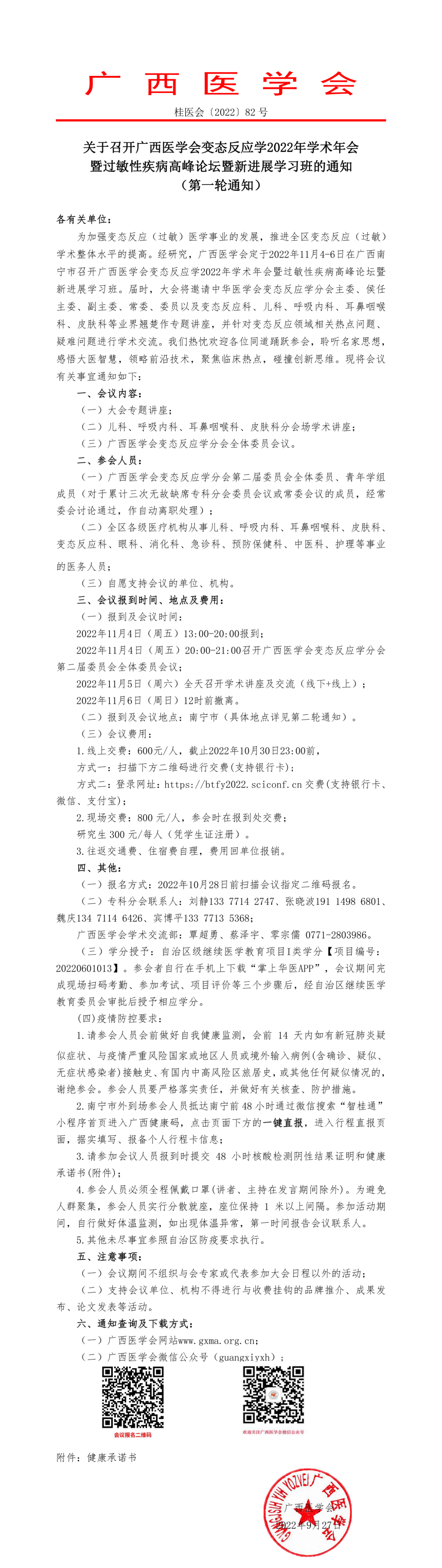 关于召开广西医学会变态反应学2022年学术年会暨过敏性疾病高峰论坛暨新进展学习班的通知(第一轮通知)