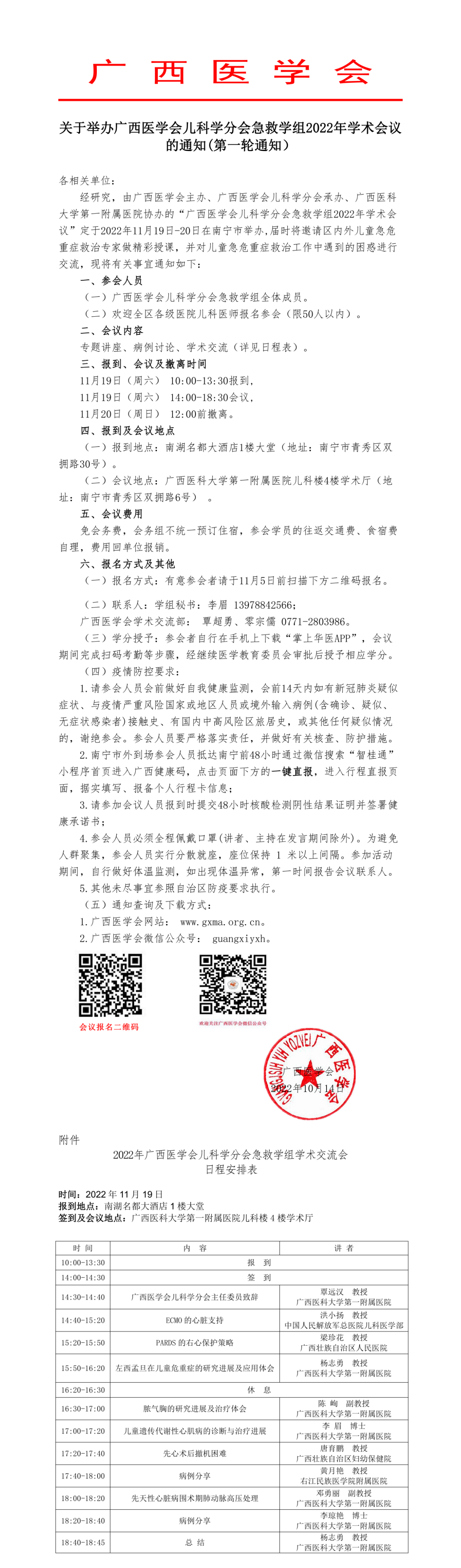 关于举办广西医学会儿科学分会急救学组2022年学术会议的通知(第一轮通知)