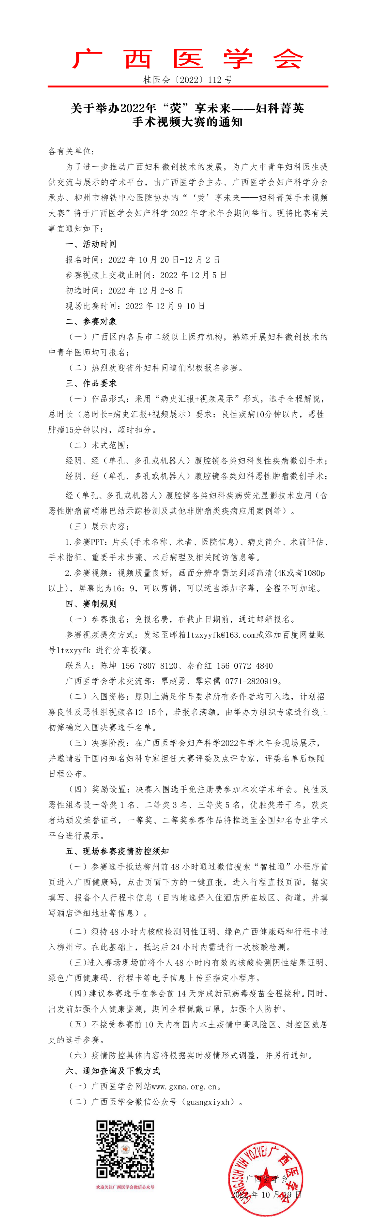 关于举办2022年“荧”享未来——妇科菁英手术视频大赛的通知