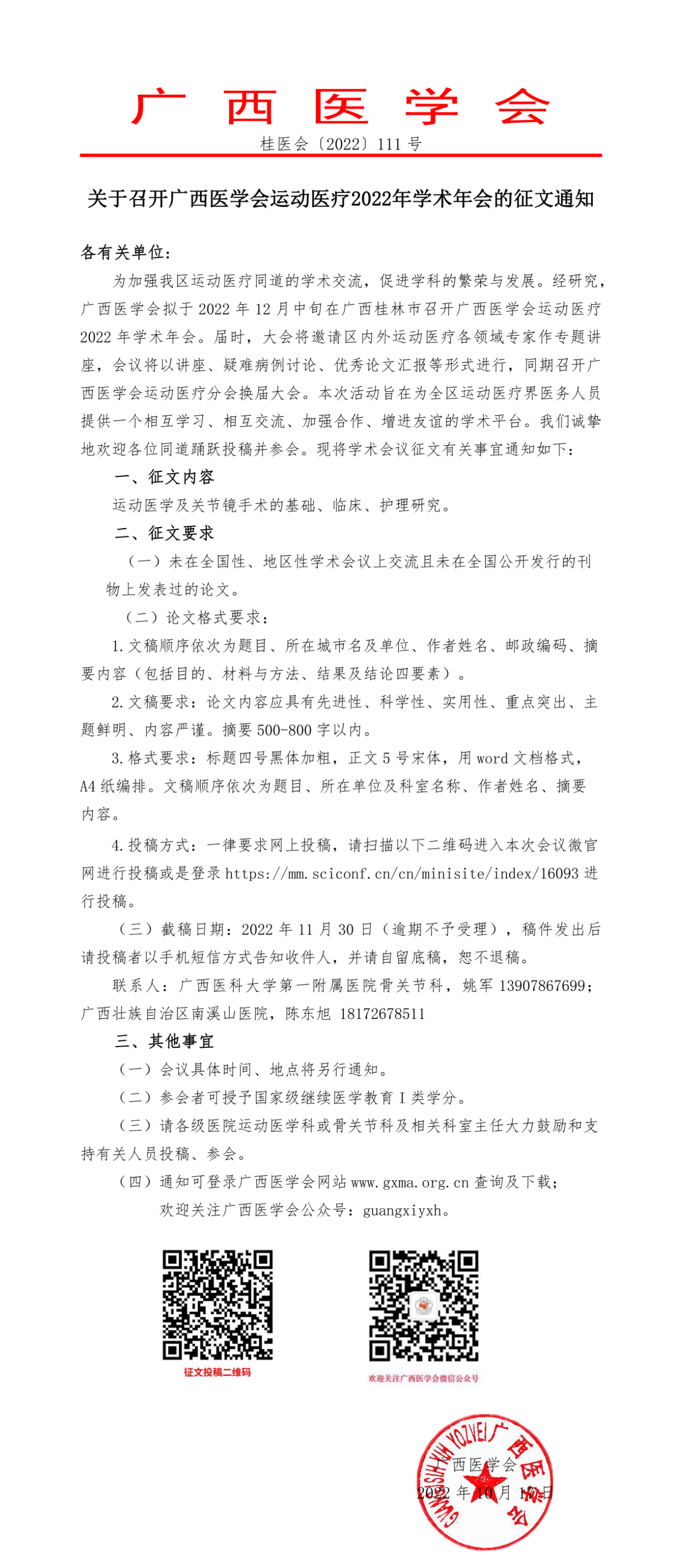 关于举办广西医学会运动医疗2022年学术年会的通知(第一轮通知)