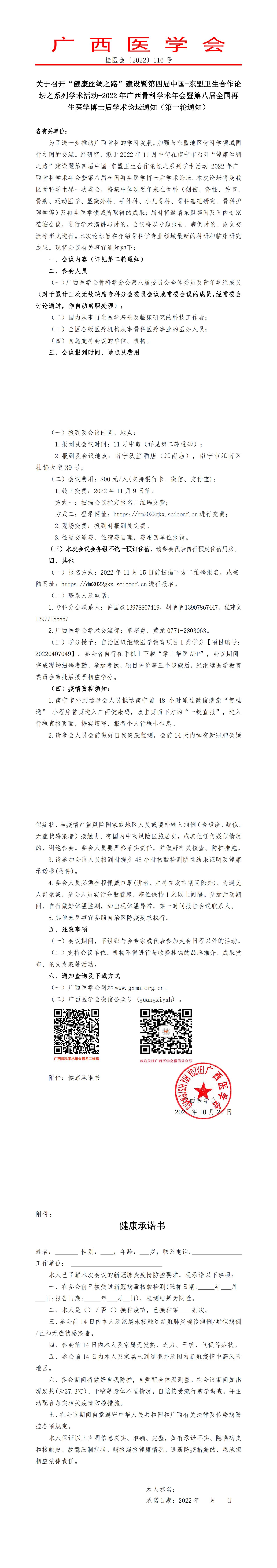 关于召开“健康丝绸之路”建设暨第四届中国-东盟卫生合作论坛之系列学术活动-2022年广西骨科学术年会暨第八届全国再生医学博士后学术论坛通知(第一轮通知)