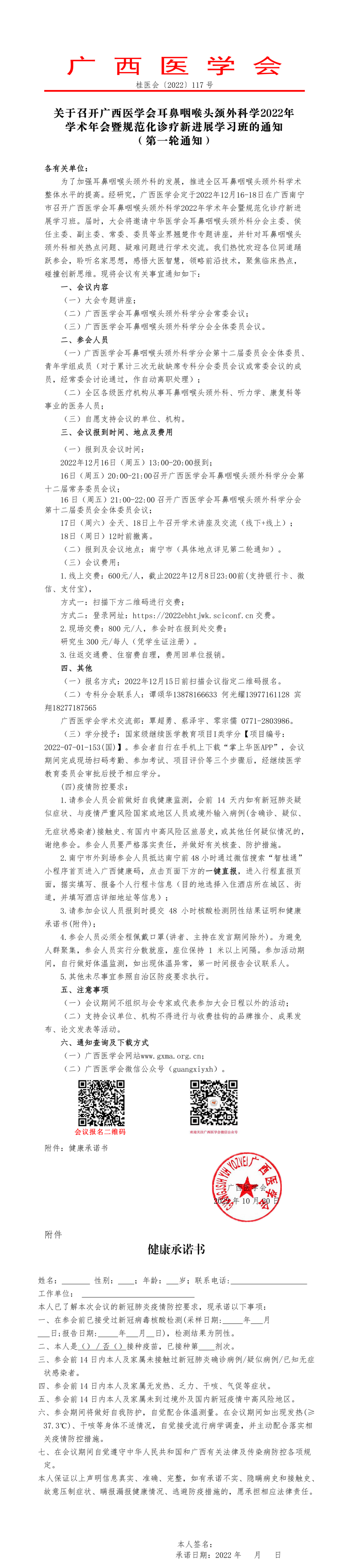 关于召开广西医学会耳鼻咽喉头颈外科学2022年学术年会暨规范化诊疗新进展学习班的通知(第一轮通知)