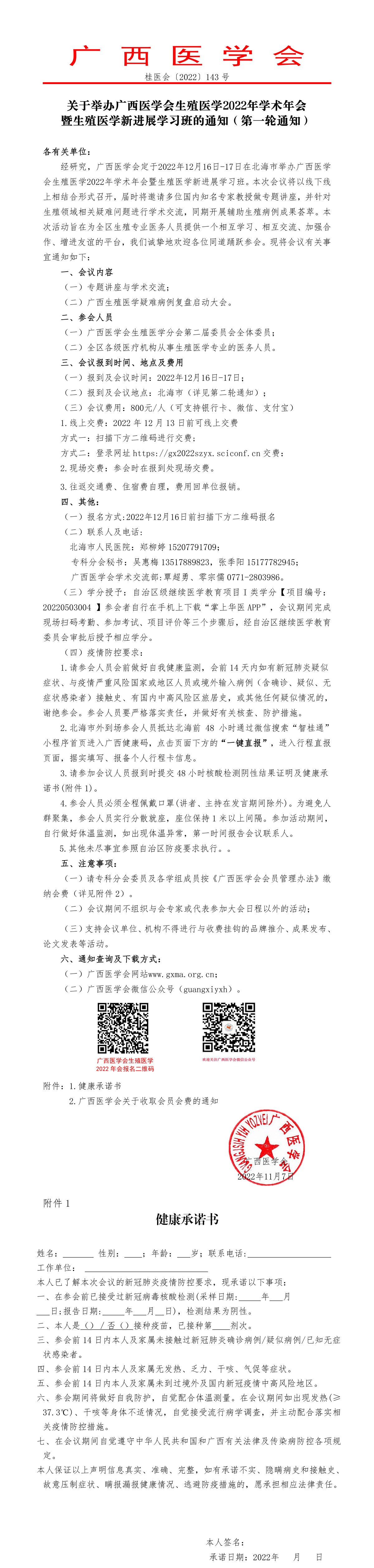 关于举办广西医学会生殖医学2022年学术年会暨生殖医学新进展学习班的通知(第一轮通知)