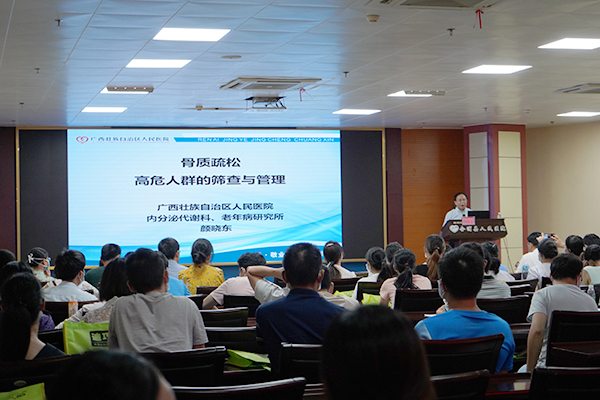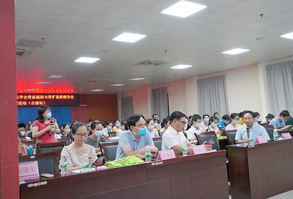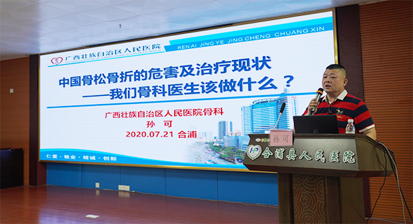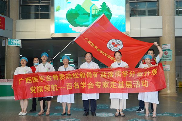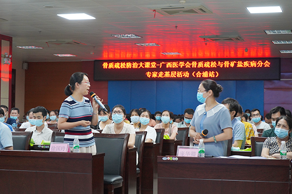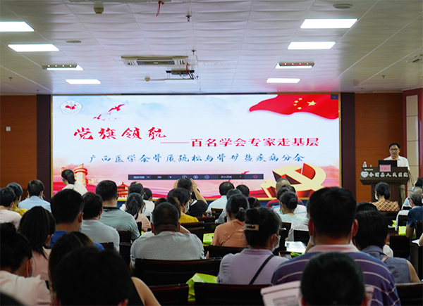 为进一步提升基层医务工作者对骨质疏松和骨质疏松性骨折的认识和诊治水平,促进专业学科服务向基层下沉,加强与基层医院密切合作,2020年7月21日,由广西医学会主办,广西医学会骨质疏松与骨矿盐疾病分会、广西壮族自治区人民医院、合浦县人民医院承办的广西医学会骨质疏松与骨矿盐疾病分会“党旗领航——百名学会专家走基层活动”在合浦县人民医院成功举行。此次活动主要内容包括专家实地指导、现场交流和学术报告会 ,来自合浦县人民医院及各镇卫生院约200名医务工作者参加当晚的骨质疏松防止大课堂。广西医学会学术交流部及广西医学会科技志愿者服务队全程积极参与本次活动。