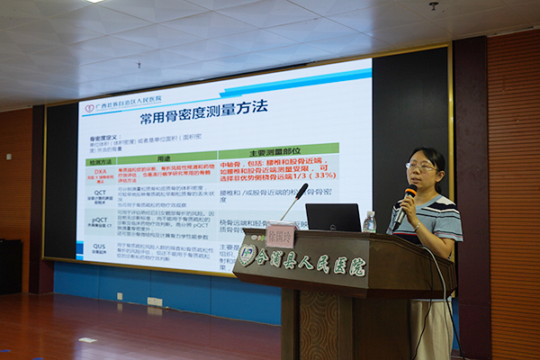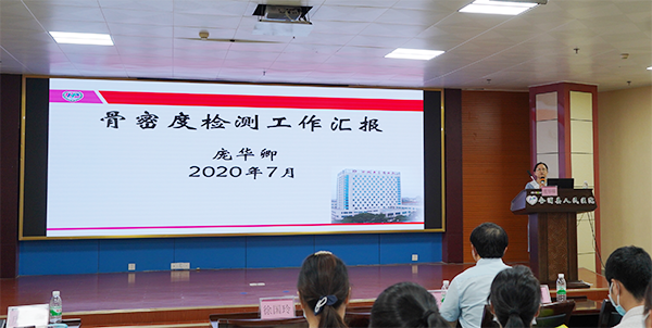 随后由庞华卿副主任医师汇报了该院近期骨密度检测工作,据统计,该院接受双能X线骨密度检测的患者骨量低于正常值的占比高达75%,庞华卿还分享了一例罕见的遗传性骨质疏松症病例的诊治经验。