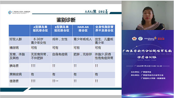 广西医科大学第一附属医院梁敏教授以《少女的烦恼》为题开展授课,授课内容结合病例,讲解了易患的内分泌疾病的鉴别诊断、多见症状,胰岛素抵抗诊疗等相关内容。