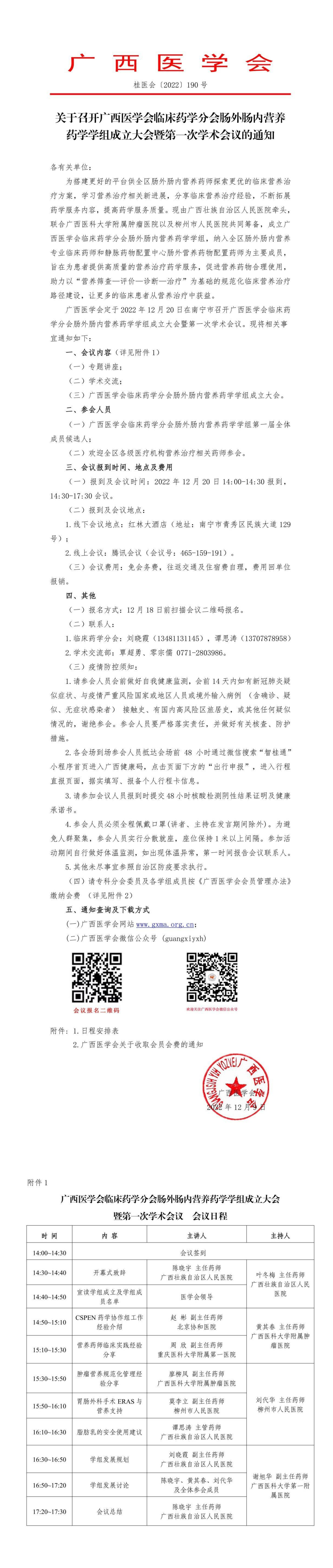 关于召开广西医学会临床药学分会肠外肠内营养药学学组成立大会暨第一次学术会议的通知