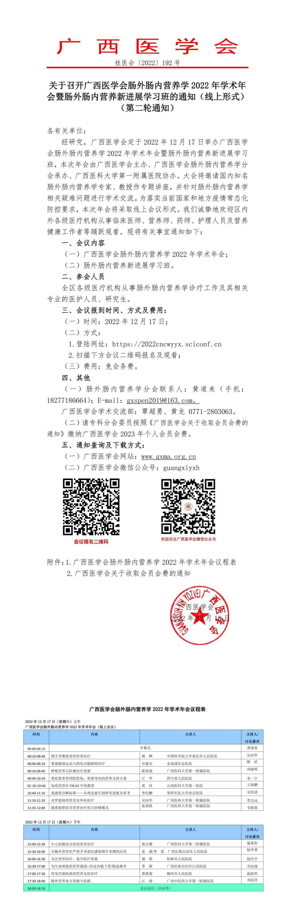 关于召开广西医学会肠外肠内营养学2022年学术年会暨肠外肠内营养新进展学习班的通知(线上形式)(第二轮通知)