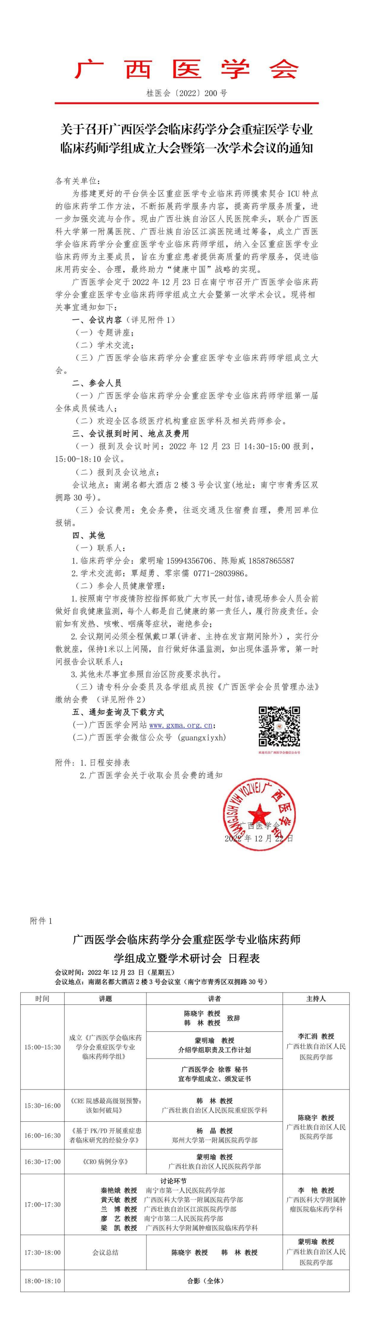 关于召开广西医学会临床药学分会重症医学专业临床药师学组成立大会暨第一次学术会议的通知