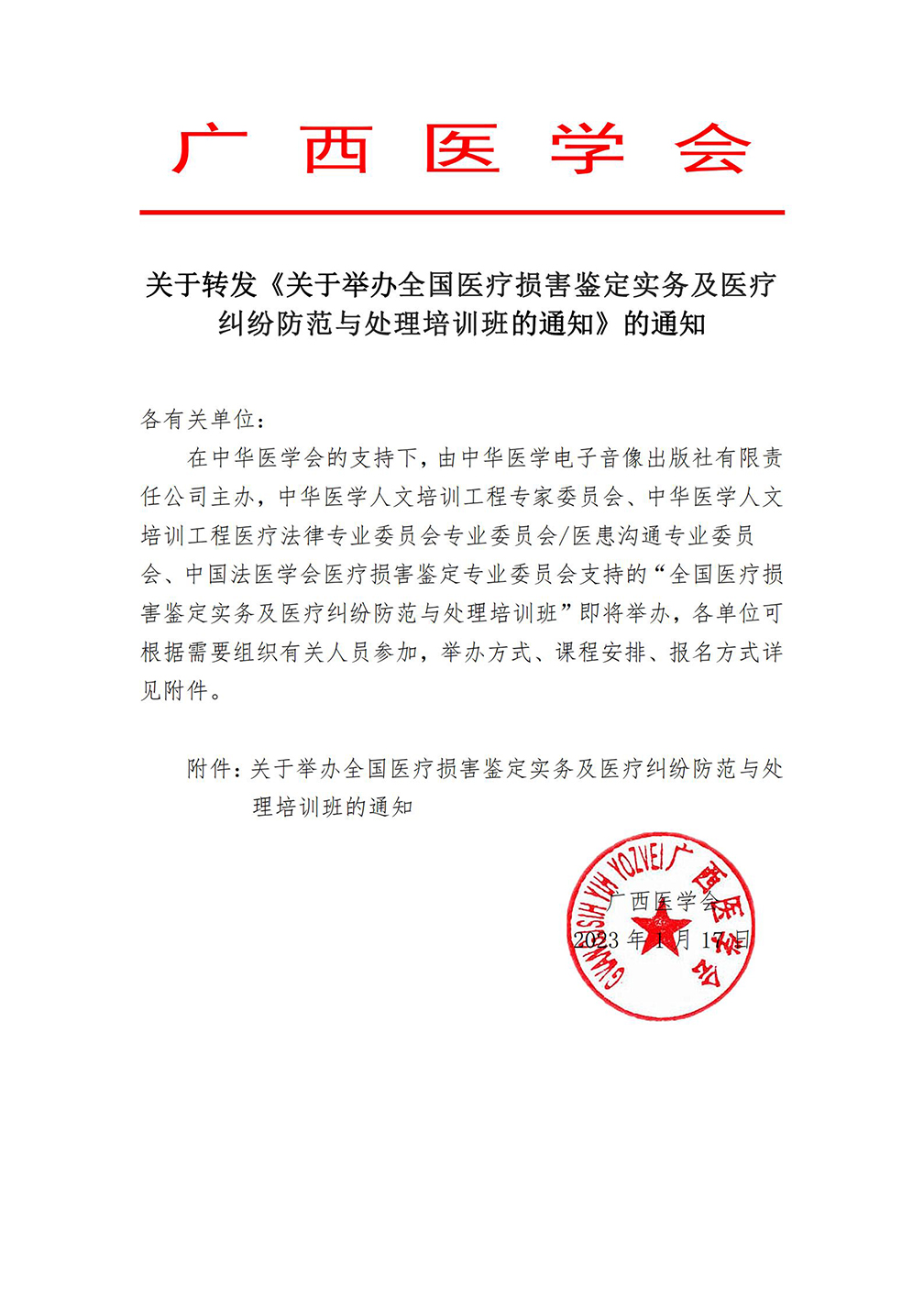 关于转发《关于举办全国医疗损害鉴定实务及医疗纠纷防范与处理培训班的通知》的通知