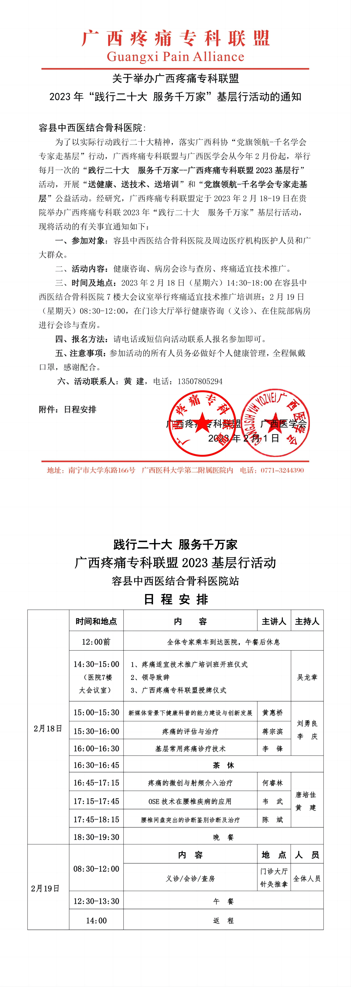 关于举办广西疼痛专科联盟2023年“践行二十大 服务千万家”基层行活动的通知