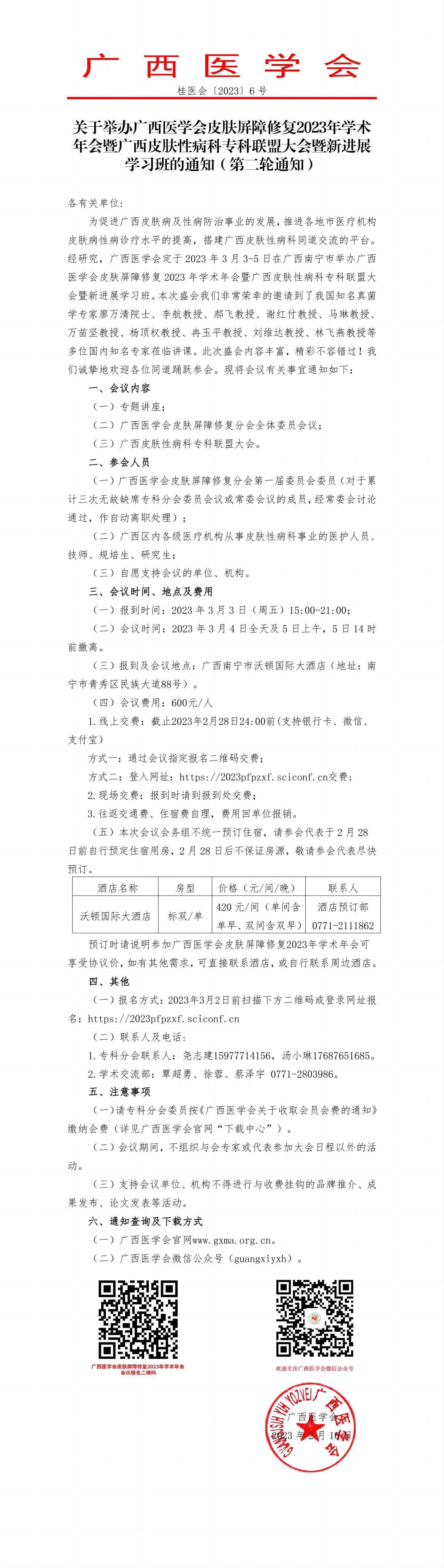 关于举办广西医学会皮肤屏障修复2023年学术年会暨广西皮肤性病科专科联盟大会暨新进展学习班的通知(第二轮通知)