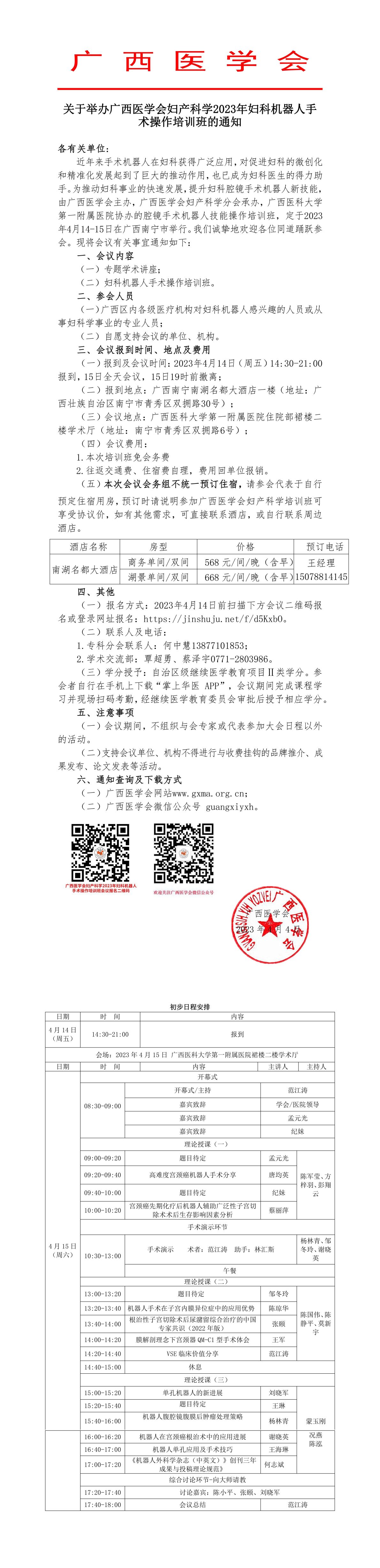 关于举办广西医学会妇产科学2023年妇科机器人手术操作培训班的通知