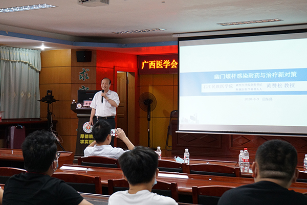 随后进行的是专题讲座,唐国都教授与黄赞松教授分别进行《脂肪肝的诊断与治疗》、《幽门螺杆菌的诊断与治疗》的专题授课,会场学习氛围浓厚。