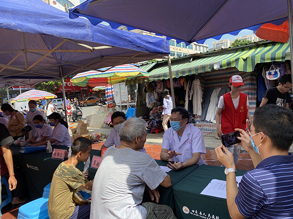 与此同时,黄赞松、王超、陈国忠、覃敏珍等专家队伍与田东县人民医院相关医务人员到田东县金穗市场开展义诊活动,为田东县广大人民群众“送医送药”,方便群众咨询、就医。