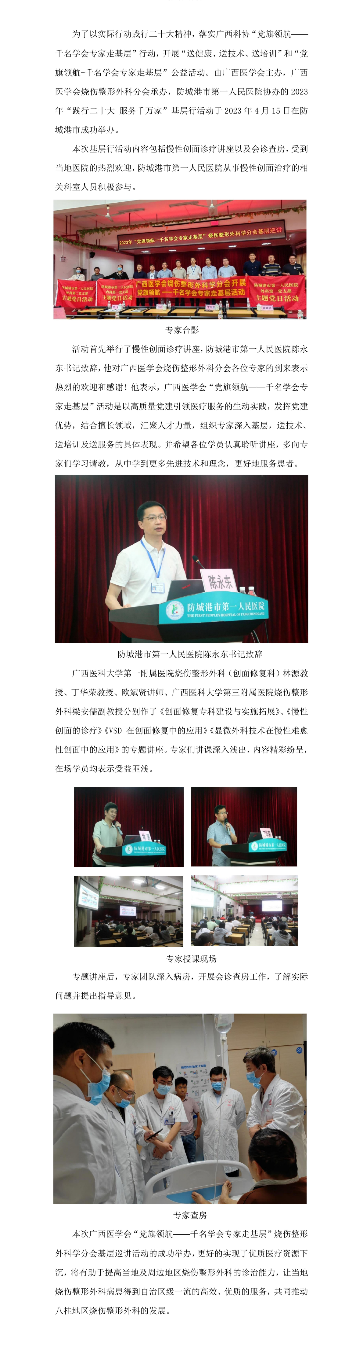 广西医学会烧伤整形外科分会赴防城港市第一人民医院开展2023年基层行活动