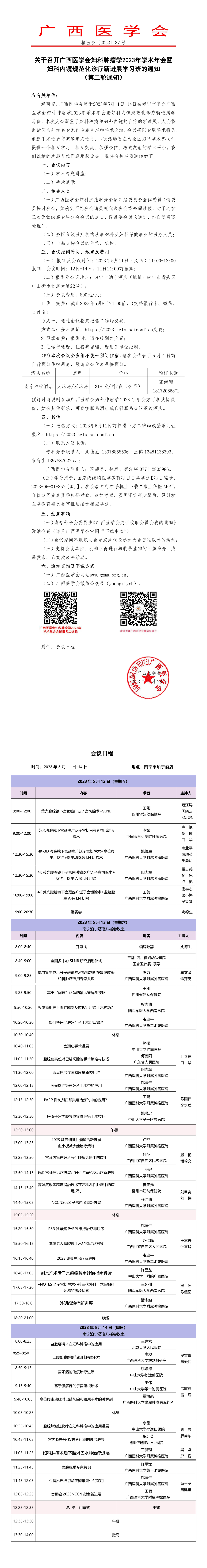 关于召开广西医学会妇科肿瘤学2023年学术年会暨妇科内镜规范化诊疗新进展学习班的通知(第二轮通知)
