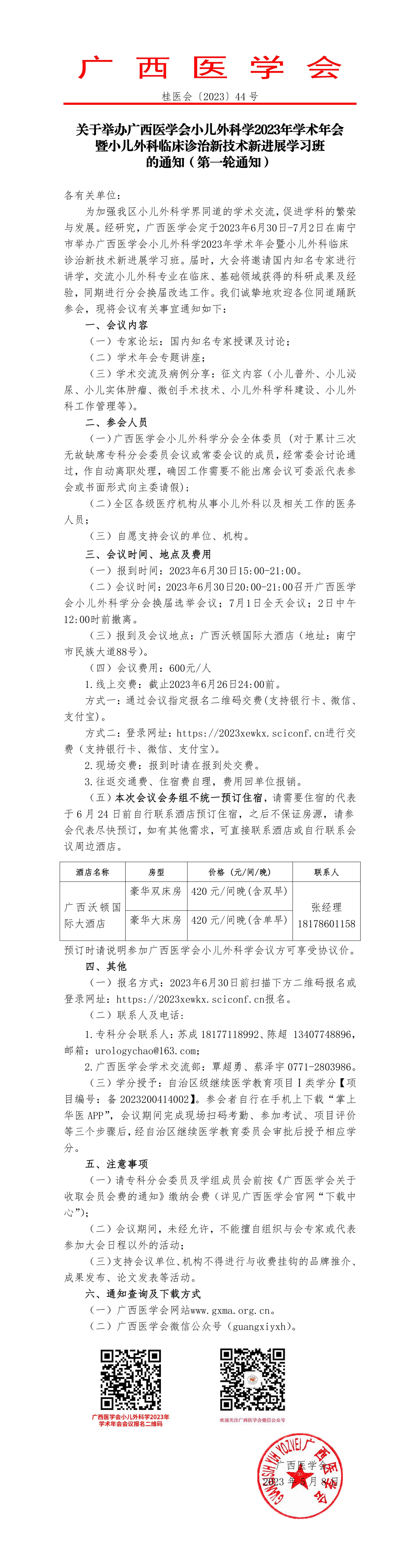 关于举办广西医学会小儿外科学2023年学术年会暨小儿外科临床诊治新技术新进展学习班的通知(第一轮通知)
