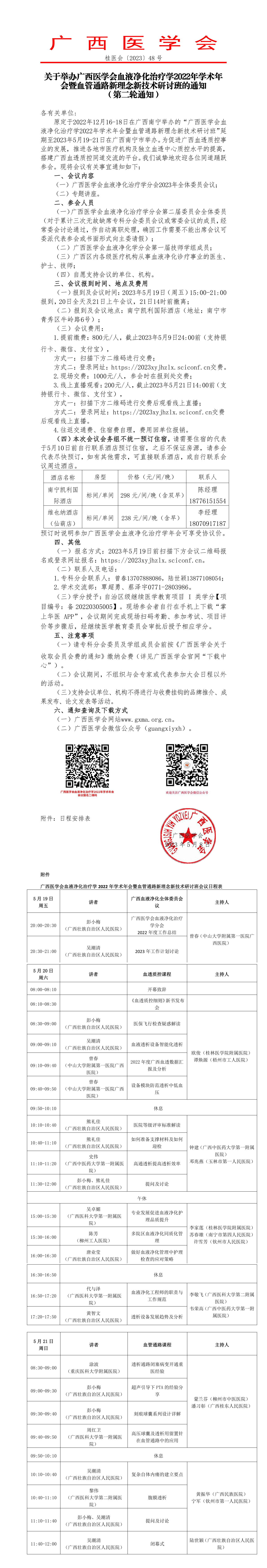 关于举办广西医学会血液净化治疗学2022年学术年会暨血管通路新理念新技术研讨班的通知(第二轮通知)