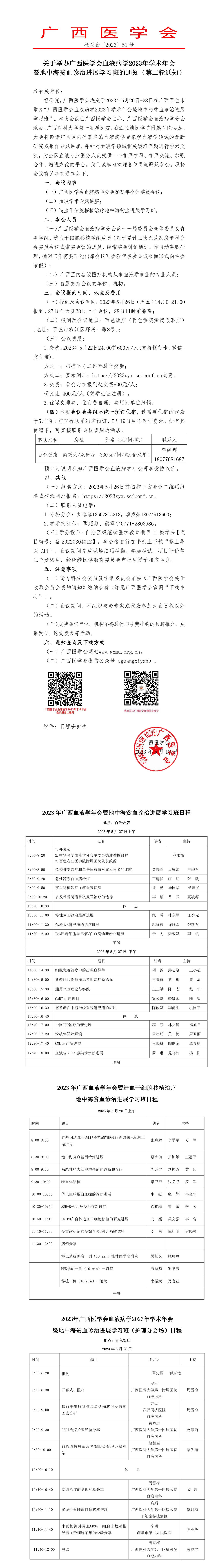 关于举办广西医学会血液病学2023年学术年会暨地中海贫血诊治进展学习班的通知(第二轮通知)