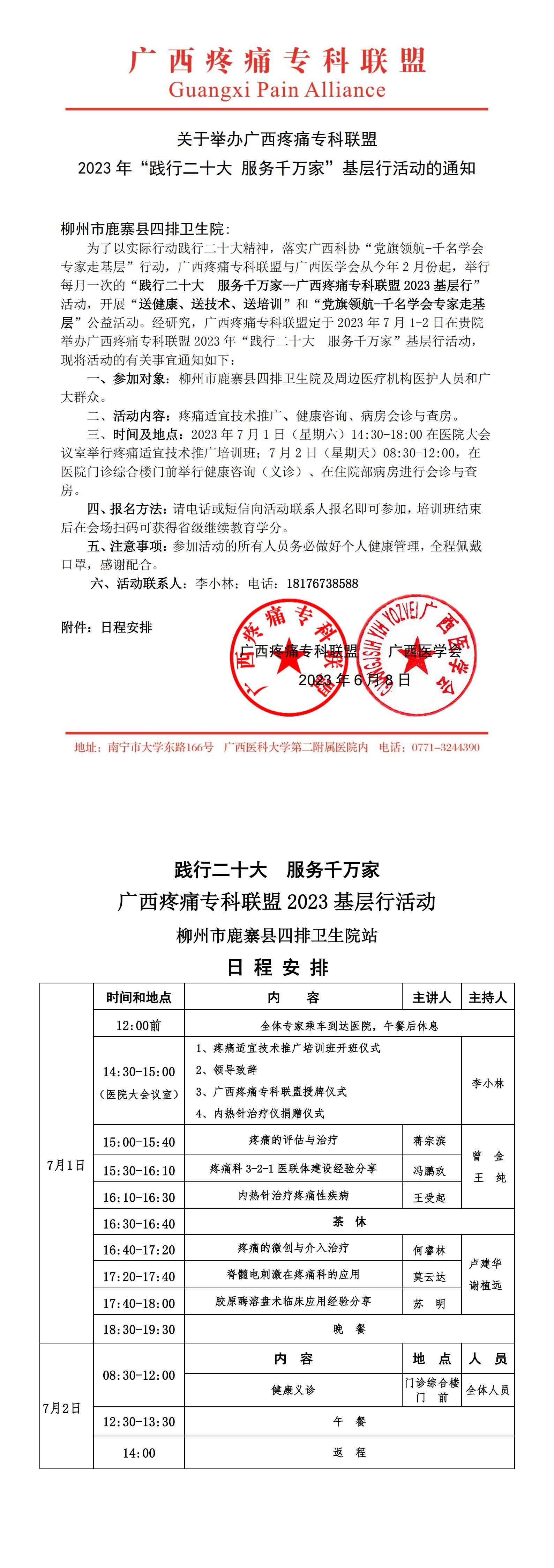 关于举办广西疼痛专科联盟 2023 年“践行二十大 服务千万家”基层行活动的通知