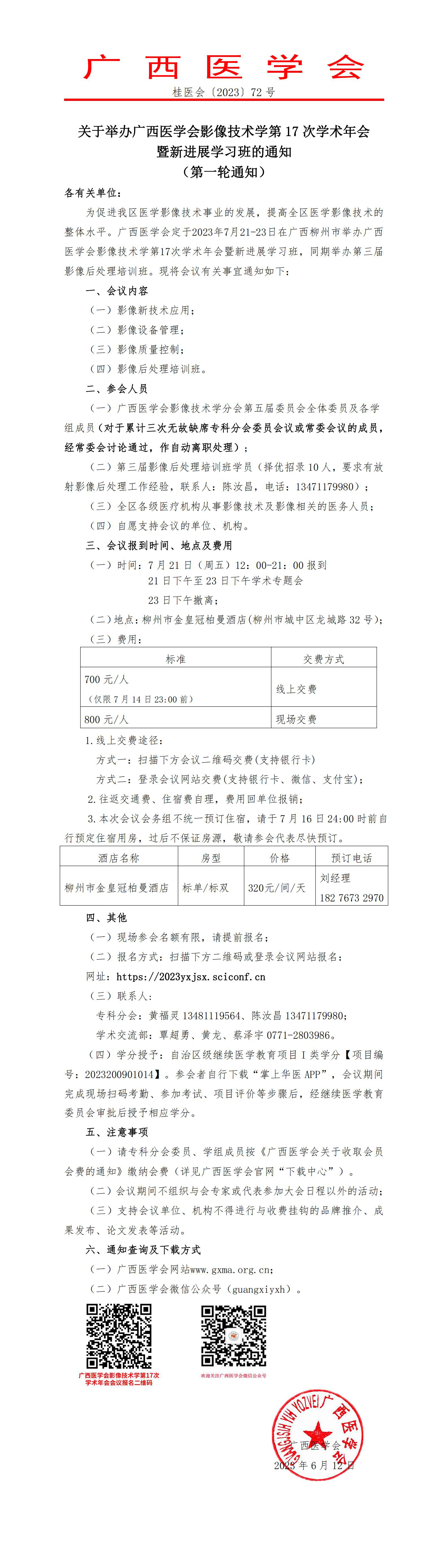 关于举办广西医学会影像技术学第17次学术年会暨新进展学习班的通知(第一轮通知)