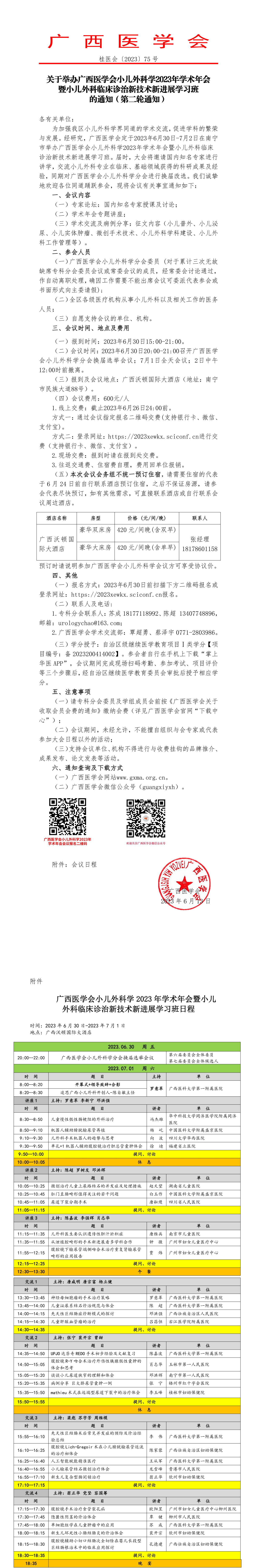 关于举办广西医学会小儿外科学2023年学术年会暨小儿外科临床诊治新技术新进展学习班的通知(第二轮通知)