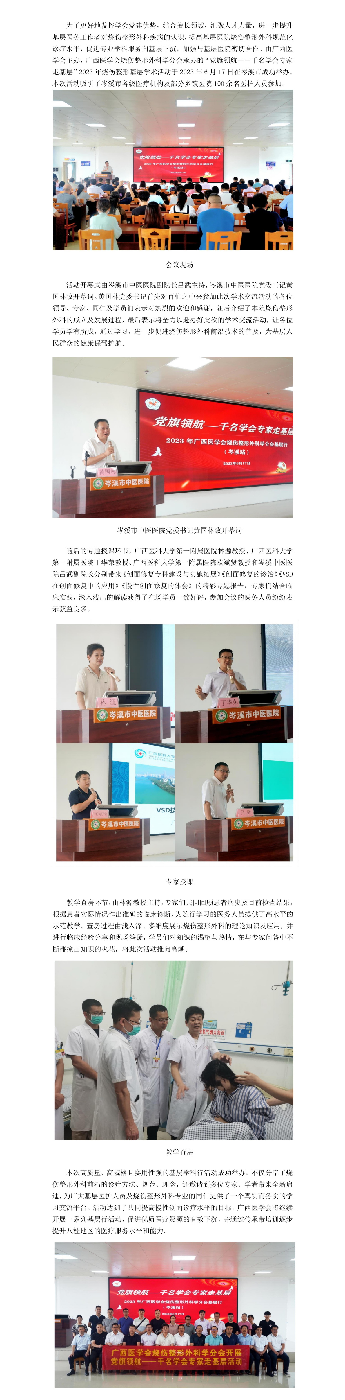 广西医学会“党旗领航――千名学会专家走基层”2023年烧伤整形外科学基层活动在岑溪市成功举办