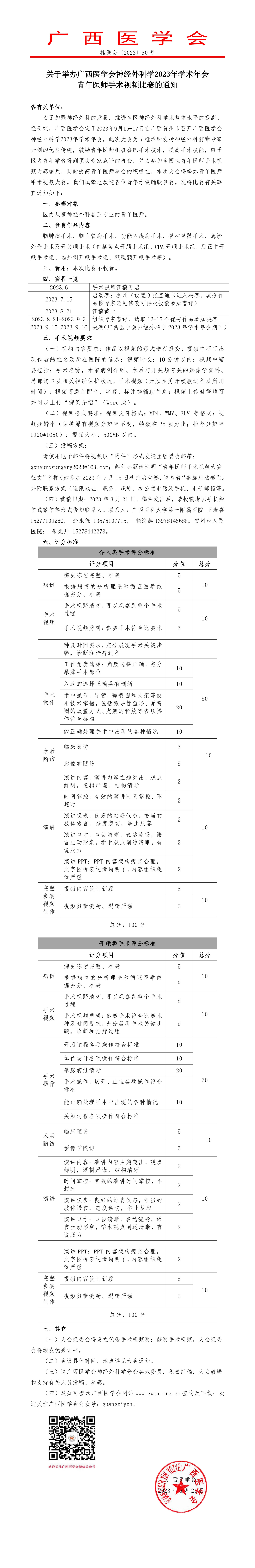 关于举办广西医学会神经外科学2023年学术年会青年医师手术视频比赛的通知