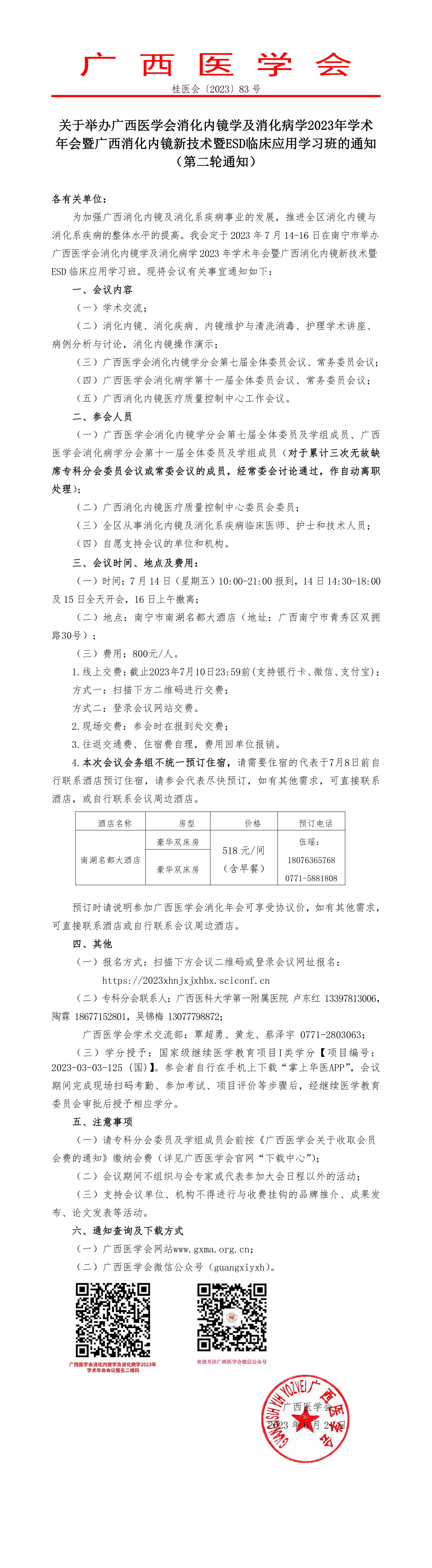 关于举办广西医学会消化内镜学及消化病学2023年学术年会暨广西消化内镜新技术暨ESD临床应用学习班的通知 (第二轮通知)