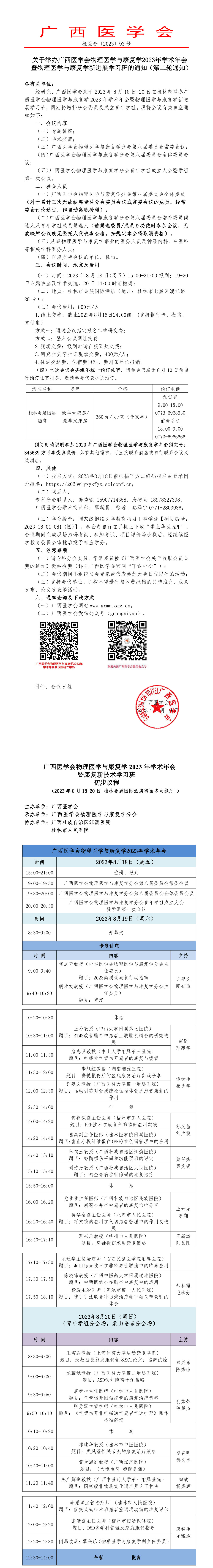 关于举办广西医学会物理医学与康复学2023年学术年会暨物理医学与康复学新进展学习班的通知(第二轮通知)