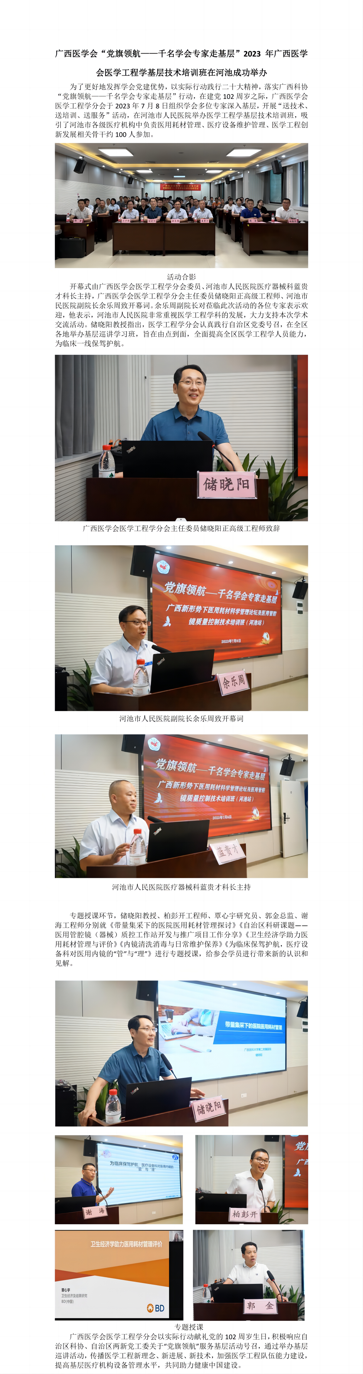 广西医学会“党旗领航——千名学会专家走基层”2023年广西医学会医学工程学基层技术培训班在河池成功举办