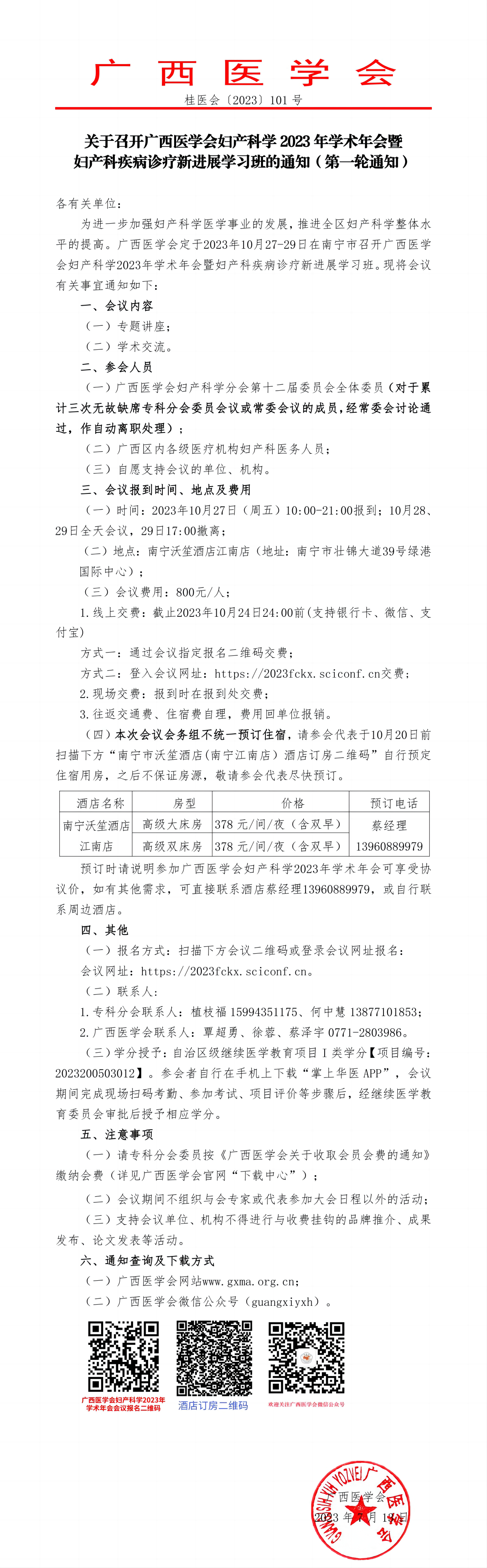 关于召开广西医学会妇产科学2023年学术年会暨妇产科疾病诊疗新进展学习班的通知(第一轮通知)