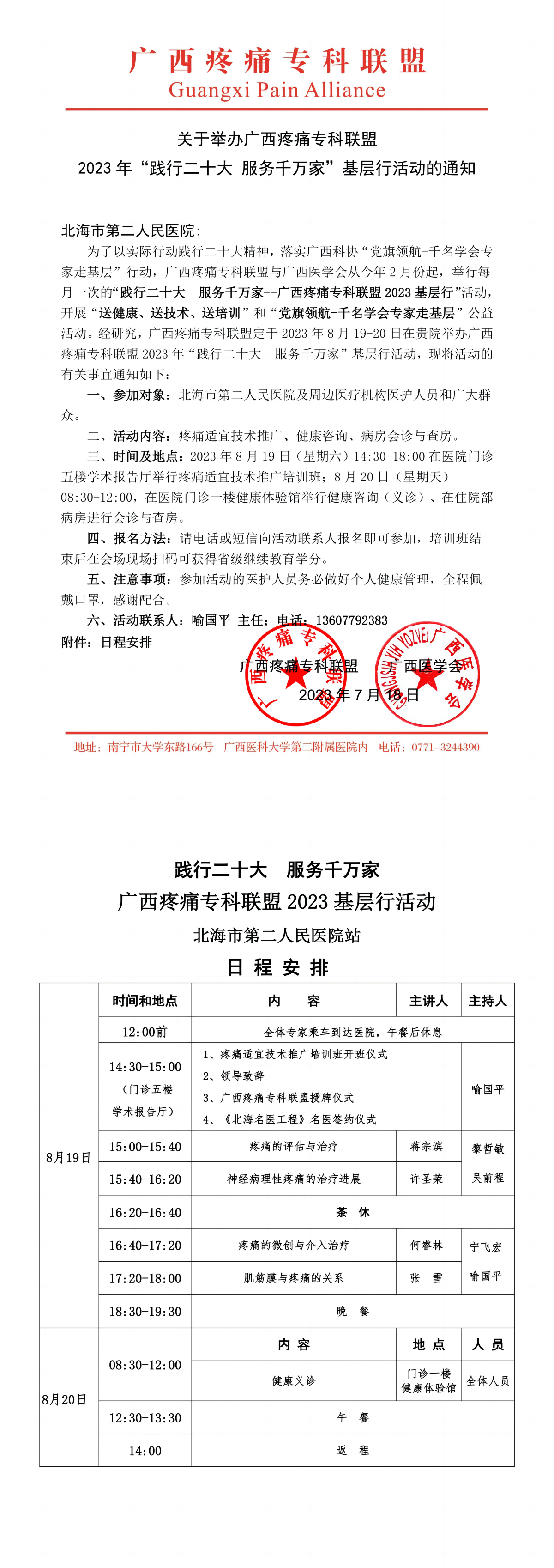 关于举办广西疼痛专科联盟2023年“践行二十大服务千万家”基层行活动的通知
