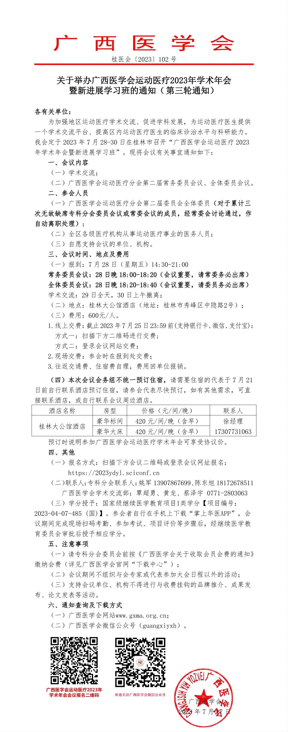 关于举办广西医学会运动医疗2023年学术年会暨新进展学习班的通知(第三轮通知)
