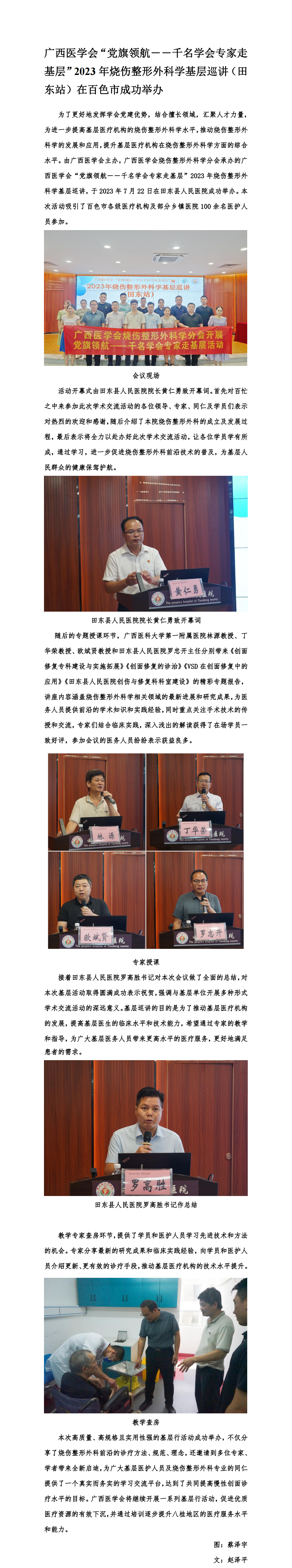 广西医学会“党旗领航――千名学会专家走基层”2023年烧伤整形外科学基层巡讲(田东站)在百色市成功举办