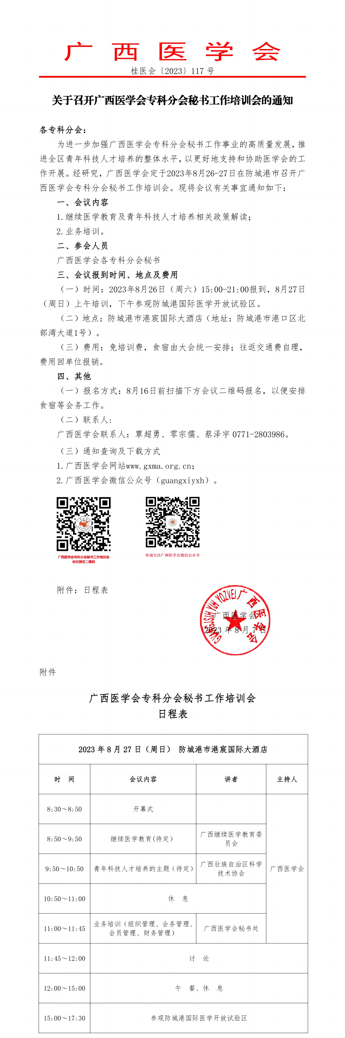 关于召开广西医学会专科分会秘书工作培训会的通知