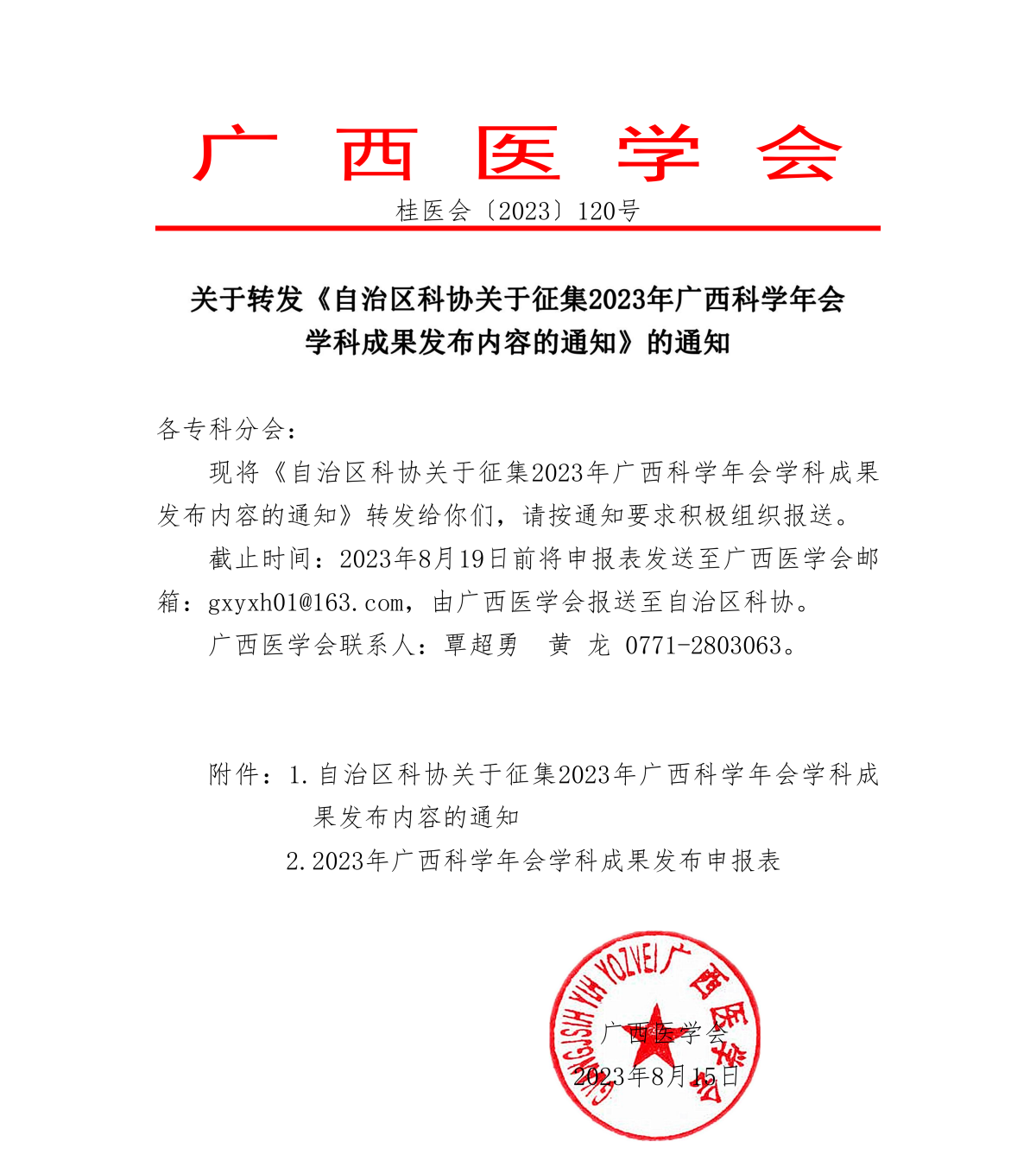 关于转发《自治区科协关于征集2023年广西科学年会学科成果发布内容的通知》的通知