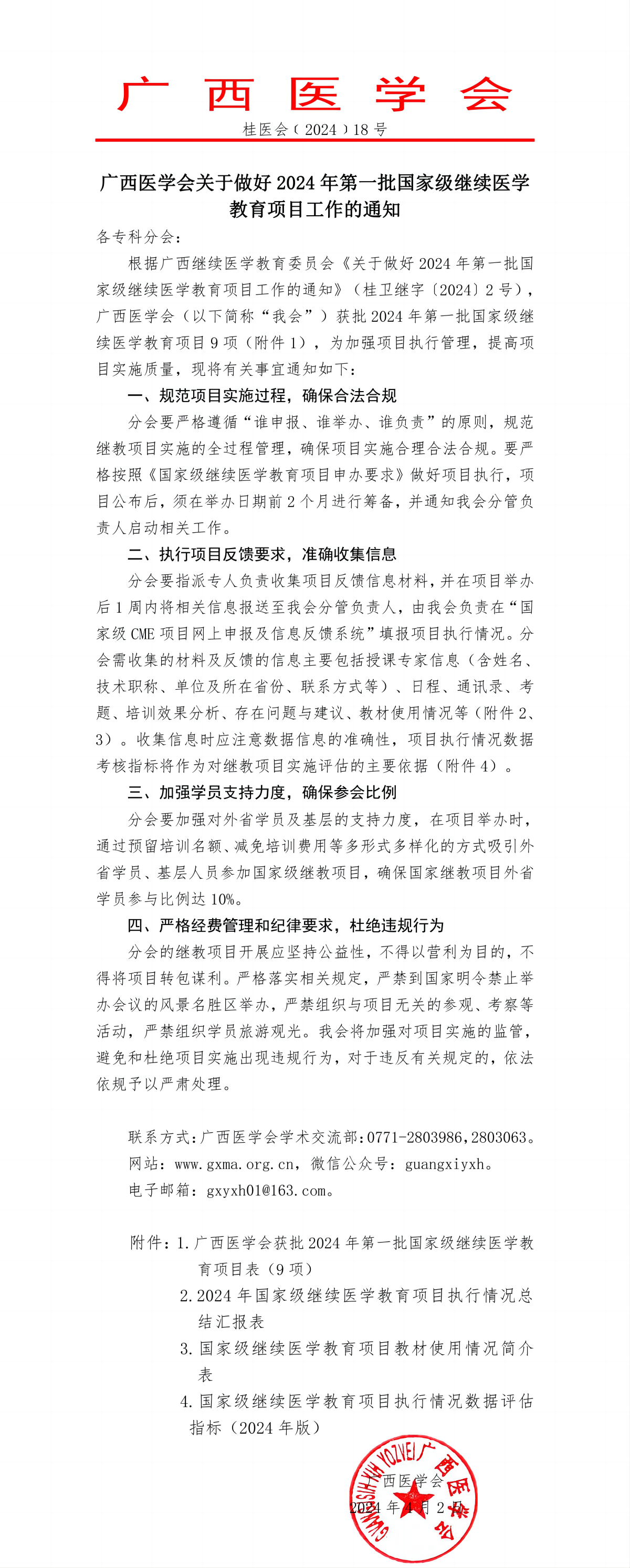 广西医学会关于做好2024年第一批国家级继续医学教育项目工作的通知