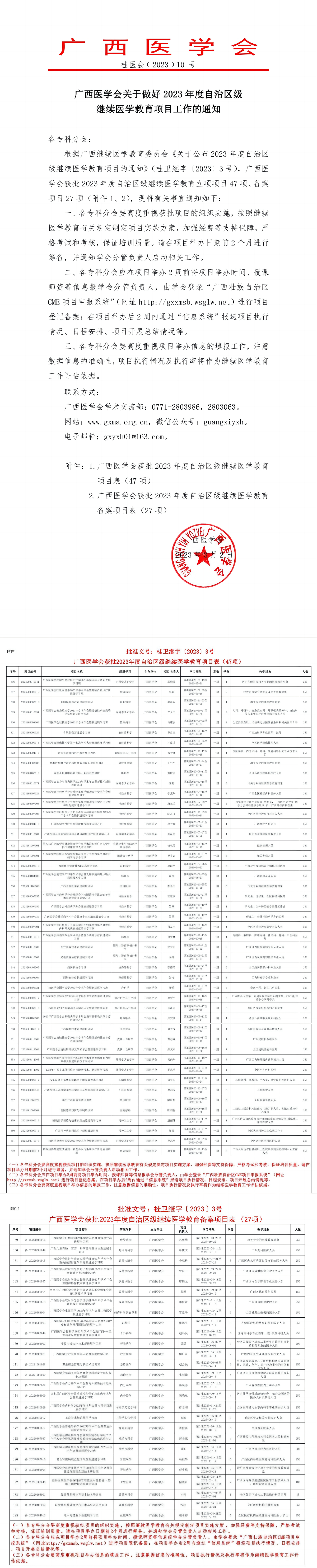 广西医学会关于做好2023年度自治区级继续医学教育项目工作的通知